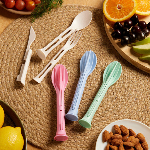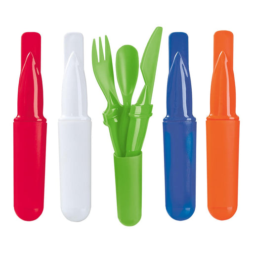 Descripción y características Set de cubiertos portátil material eco-friendly. Contiene cuchara, tenedor, cuchillo y estuche de almacenamiento. Liv...