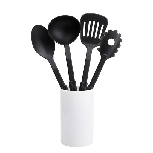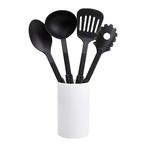 Descripción y características Incluye base y 4 utensilios de cocina: cuchara, cucharón, pala y cuchara de pasta. Información Básica Categoría: HOGA...