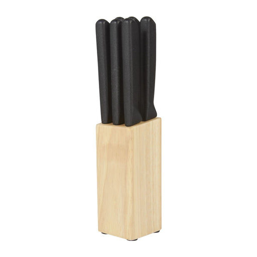 Descripción y características Incluye 6 cuchillos y base de madera. La madera es un producto natural el cual puede presentar variaciones en tonalid...
