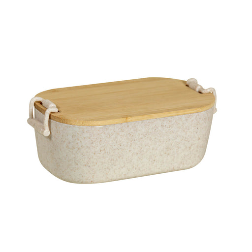 Descripción y características Lonchera de plástico con un toque natural y elegante, su tapa de bambú se asegura con dos broches de plástico, para m...