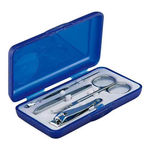 Descripción y características Incluye 1 tijeras, 1 pinza para cejas, 1 corta unas, 1 lima de unas, 1 empujador de cutícula y 1 limpia unas. No para...