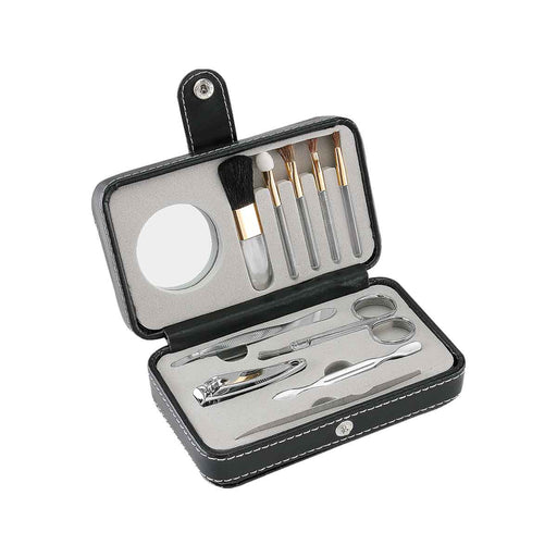 Descripción y características Set con 1 tijeras, 1 pinza para cejas, 1 cortaúñas, 1 lima de unas, 1 empujador de cutícula, 1 brocha de rubor, 1 apl...
