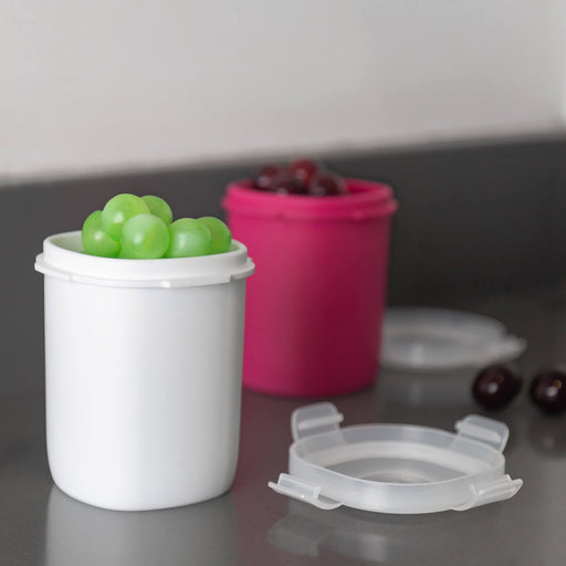 Descripción y características Vasito contenedor de plástico con tapa con cuatro pestañas y sello hermético para evitar derrames. Compacto y versáti...