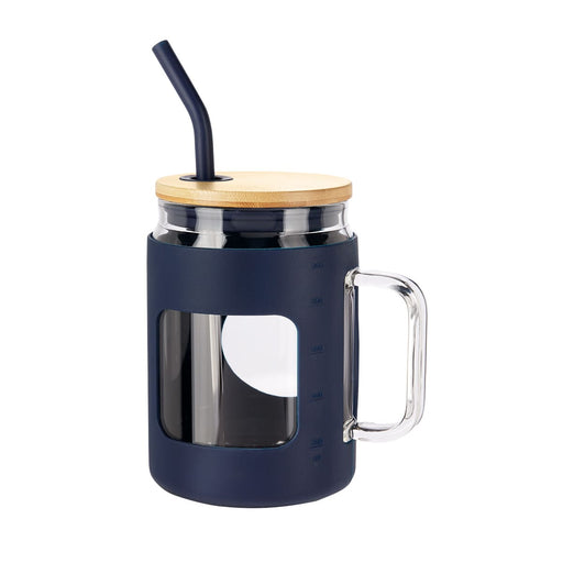 Description and characteristics Glass cylinder with a handle and silicone sleeve graduated in ml. Bamboo lid with push-button closure and straw ...