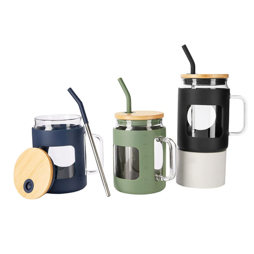 Description and characteristics Glass cylinder with removable silicone sleeve, bamboo lid, and silicone straw. Includes individual packaging. Ba...