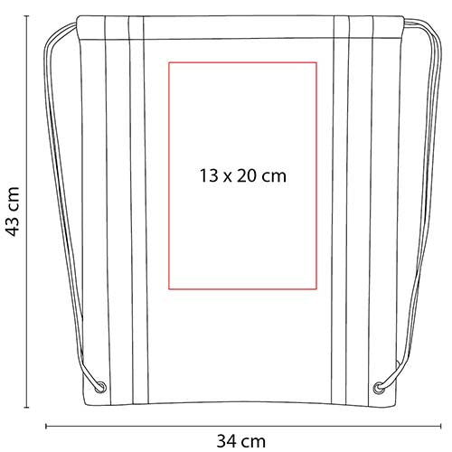 Backpack with drawstring straps and drawstring closure. Includes two reflective strips on the front.