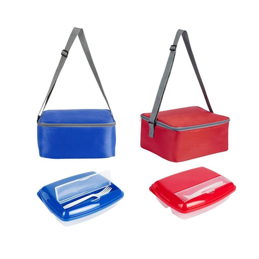 Description and characteristics Lunchbox and plastic container set. Lunchbox with plastic-coated interior, zippered main bag, mesh pocket inside...
