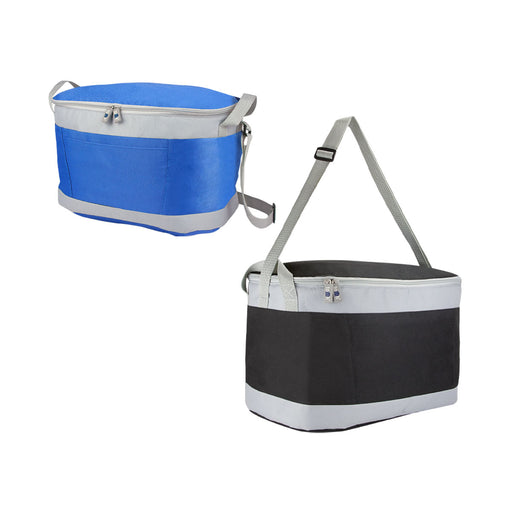 Description and characteristics Cooler bag with a sealed plastic interior. Open main compartment. Metal-framed handles. Holds 12 cans. Basic I...