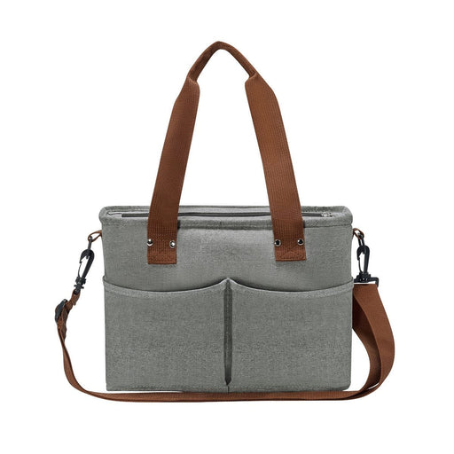 Description and characteristics Plastic-coated interior. Features top and bottom zippered compartments. Includes mesh side pockets, a snap handl...
