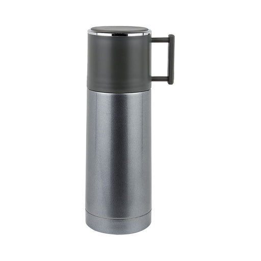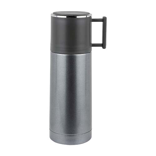 Description and characteristics Double-walled vacuum-sealed thermos. Stainless steel interior and exterior walls. Rough powder-coated finish. Pl...